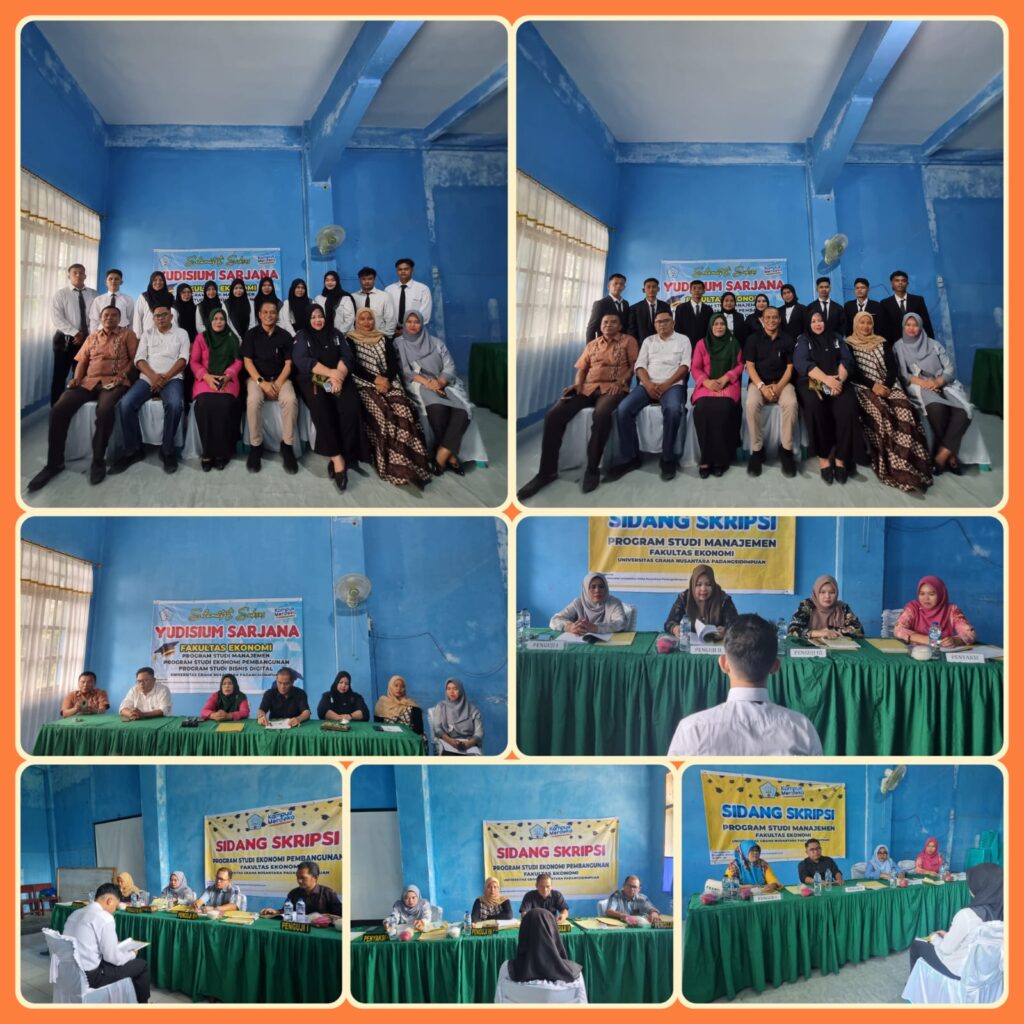 Pelaksanaan kegiatan sidang Skripsi dan Yudisium sebanyak 20 mahasiswa/i Fakultas Ekonomi, terdiri dari Program Studi Manajemen sebanyak 11 mahasiswa/i dan Program Studi Ekonomi Pembangunan sebanyak 9 mahasiswa/i. Sidang skripsi dilaksanakan pada tgl. 3-4 Juni 2025 sedangkan Yudisium dilaksanakan pada tgl. 4 Juni 2025.